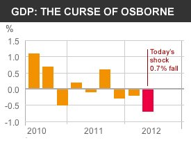 The 0.7% second-quarter fall in GDP in 2012 brings a calamitous verdict on George Osborne’s policy, with the UK economy now smaller than it was in 2010, and double-dip recession longer than in the 1970s.
