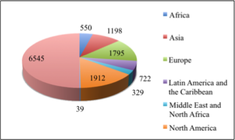 2011 GLOBAL DISTRIBUTION OF THINK TANKS BY REGION 6,545 THINK TANKS TOTAL (18)