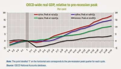 Authoritative economists such as Larry Summers (video) and Gavyn Davies and others have instead been discussing the ‘secular stagnation’ of the industrialised economies. Paul Krugman wonders whether this is ‘a permanent slump’.