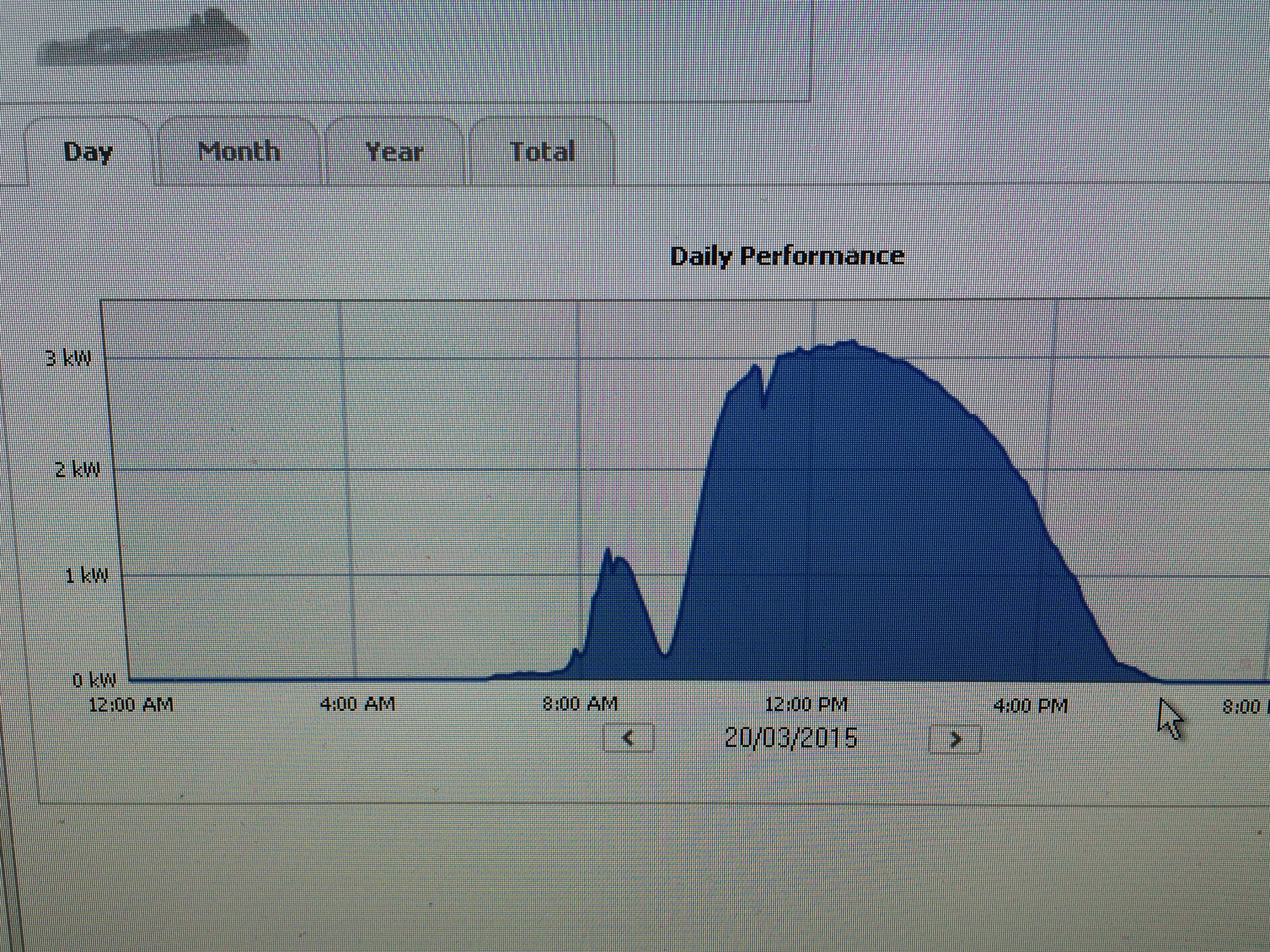 aIMG_0816PV panels were installed on my roof in 2012, on the very day which the Coalition government decided to cut the incentivising feed-in-tariff, and the tariff and energy savings have already half-paid for the installation. This graph shows  the energy produced in one day in March – the dip is because there happened to be a partial eclipse of the sun that morning. Imagine the energy which could be produced if these panels were on every public building. There are even roof tiles which can act as photovoltaic cells and recently even completely transparent ones which could be put in our window frames, making  every window a power source. Batteries have been developed which store energy produced by such systems.