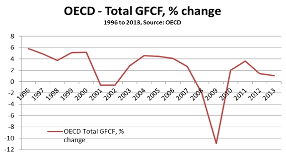 Fig. 4 OECD GFCF, % change 1996 to 2013
