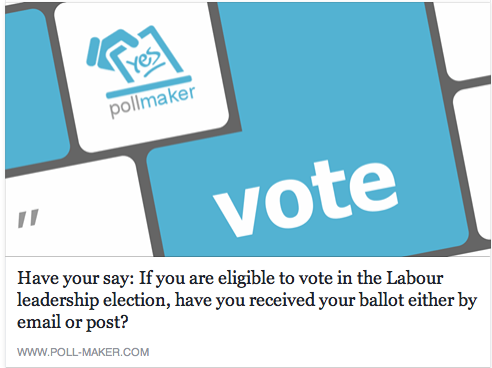 Screen Shot 2016-09-05 at 22.01.37 Published September 5, 2016 at 492 × 368 in Have you had your ballot for the Labour leadership contest? Share this: Click to share on Facebook (Opens in new window) Facebook Click to share on Reddit (Opens in new window) Reddit Click to share on X (Opens in new window) X Click to print (Opens in new window) Print Click to email a link to a friend (Opens in new window) Email More Click to share on LinkedIn (Opens in new window) LinkedIn Click to share on Tumblr (Opens in new window) Tumblr Like Loading...