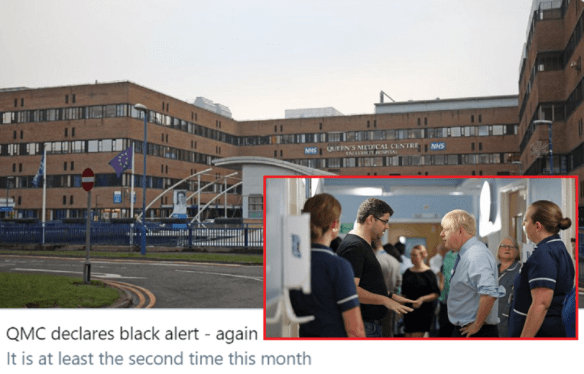 Johnson’s handlers were desperately trying to avoid 3rd NHS humiliation – but there’s nowhere in the NHS Tories haven’t wrecked. Boris Johnson and his handlers chose King’s Mill in Nottinghamshire for his latest NHS ‘PR stunt’ – and immediately came under fire for ignoring a neighbouring hospital that declared a ‘black alert’ only yesterday.